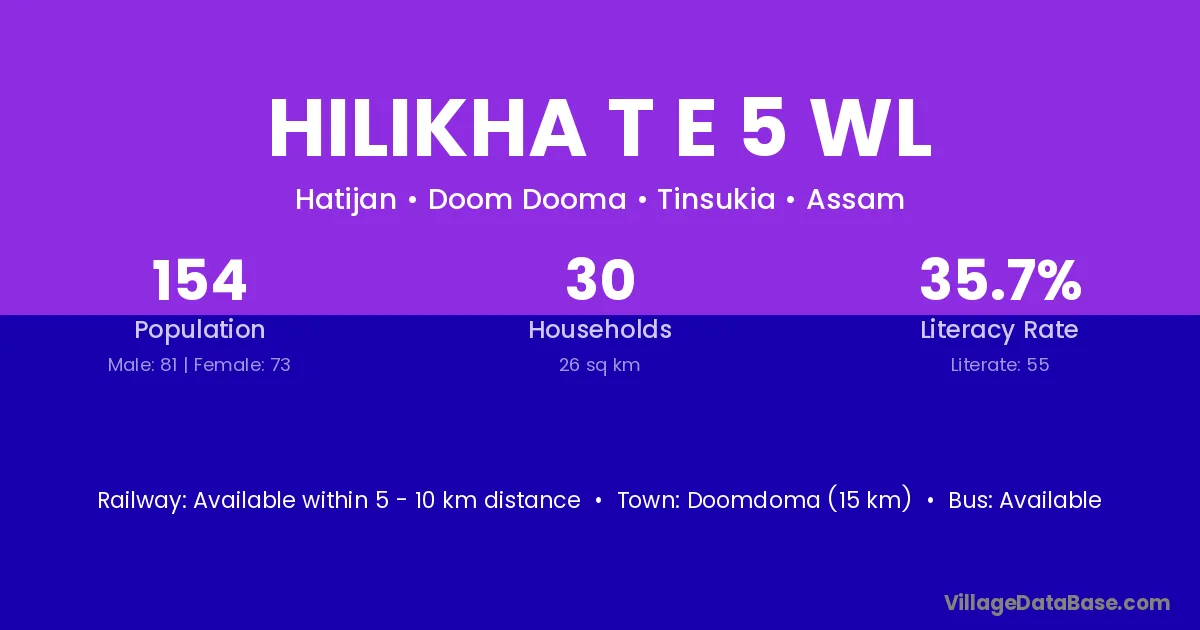 Hilikha T E 5 Wl village has a total population of 154 people, of which 81 are males and 73 are females.
