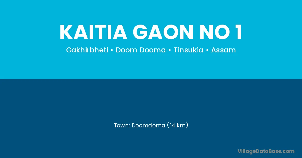 Doomdoma (14 km) is the nearest town to Kaitia Gaon No 1 village for major economic activities and is located approximately 14 km away.
