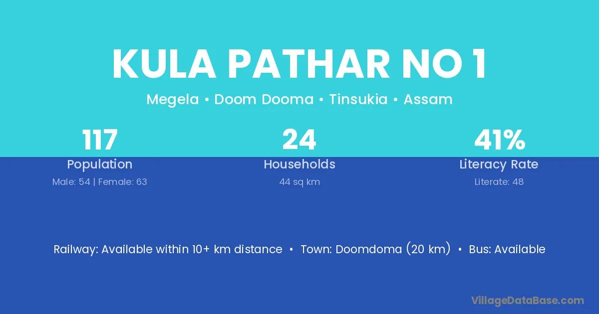 Kula Pathar No 1 village has a total population of 117 people, of which 54 are males and 63 are females.