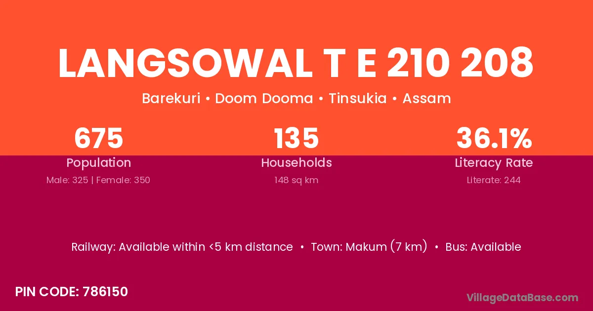 Makum (7 km) is the nearest town to Langsowal T E 210 208 village for major economic activities and is located approximately 7 km away.