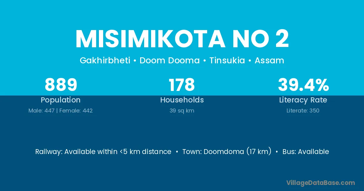 Misimikota No 2 village has a total population of 889 people, of which 447 are males and 442 are females.
