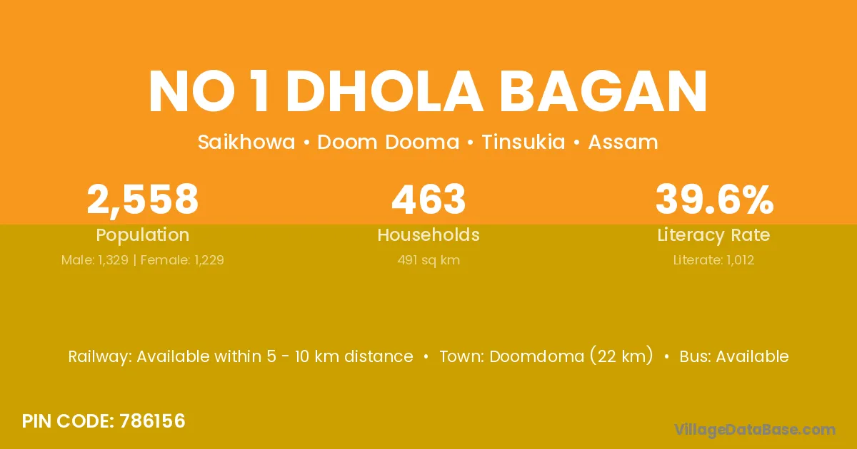 No 1 Dhola Bagan village has a total population of 2,558 people, of which 1,329 are males and 1,229 are females.