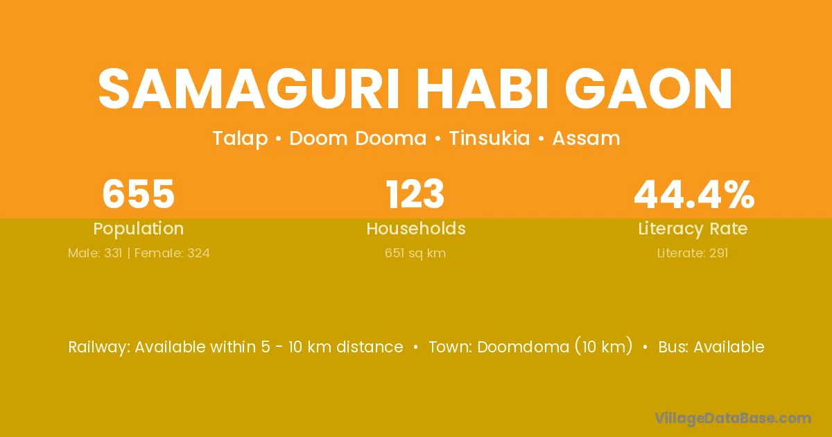 Samaguri Habi Gaon village has a total population of 655 people, of which 331 are males and 324 are females.