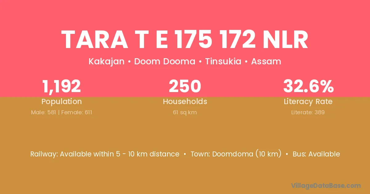 Tara T E 175 172 Nlr village has a total population of 1,192 people, of which 581 are males and 611 are females.