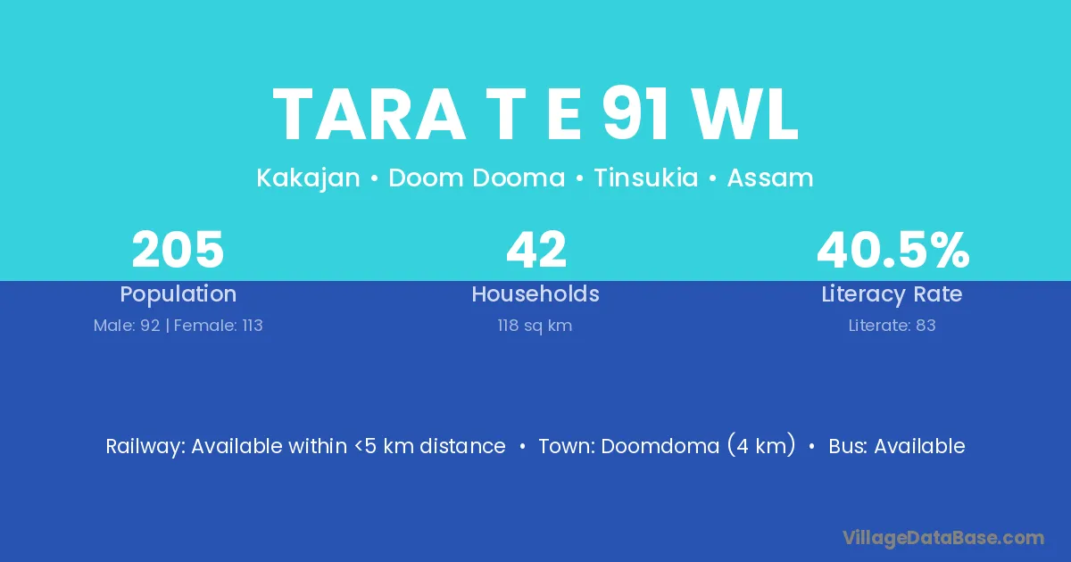Tara T E 91 Wl village is located in the Doom Dooma Subdivision of the Tinsukia district in Assam .