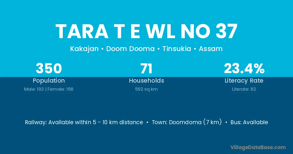 Doomdoma (7 km) is the nearest town to Tara T E Wl No 37 village for major economic activities and is located approximately 7 km away.