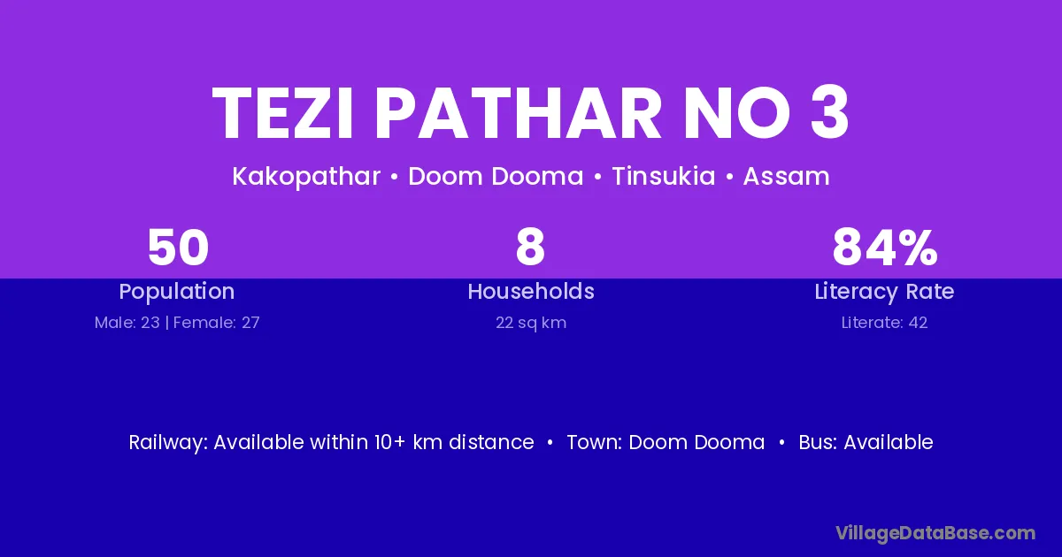 Doom Dooma is the nearest town to Tezi Pathar No 3 village for major economic activities