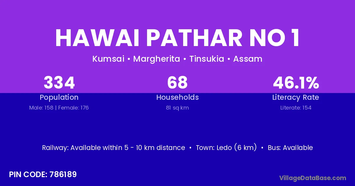 Ledo (6 km) is the nearest town to Hawai Pathar No 1 village for major economic activities and is located approximately 6 km away.