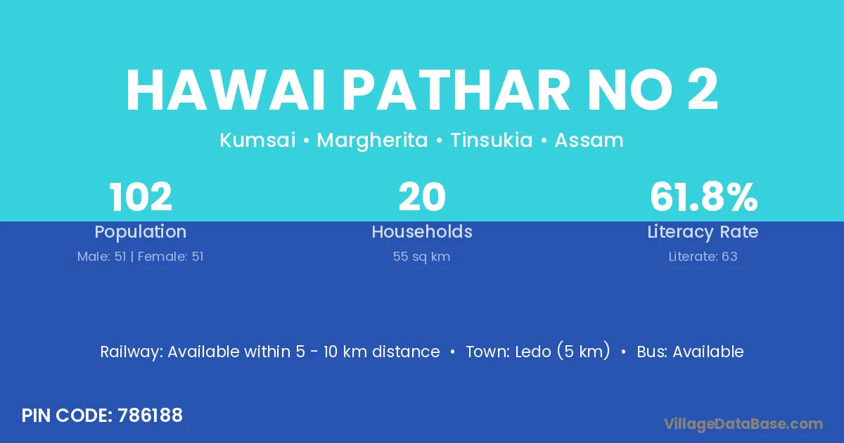 Ledo (5 km) is the nearest town to Hawai Pathar No 2 village for major economic activities and is located approximately 5 km away.