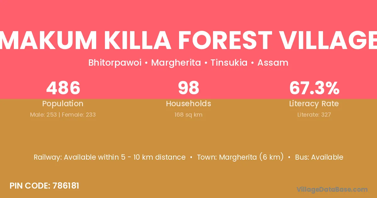 Makum Killa Forest Village village has a total population of 486 people, of which 253 are males and 233 are females.