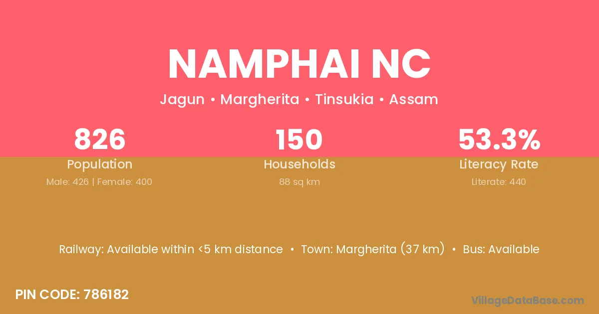 Margherita (37 km) is the nearest town to Namphai Nc village for major economic activities and is located approximately 37 km away.