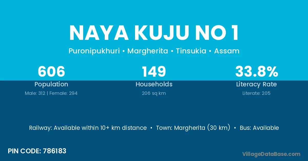 Margherita (30 km) is the nearest town to Naya Kuju No 1 village for major economic activities and is located approximately 30 km away.