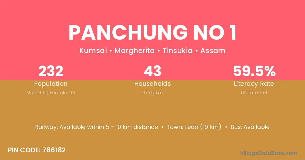 Panchung No 1 village has a total population of 232 people, of which 119 are males and 113 are females.