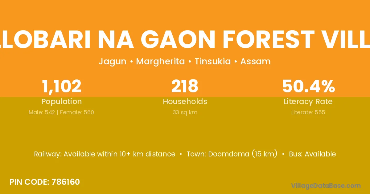 Phillobari Na Gaon Forest Village village has a total population of 1,102 people, of which 542 are males and 560 are females.
