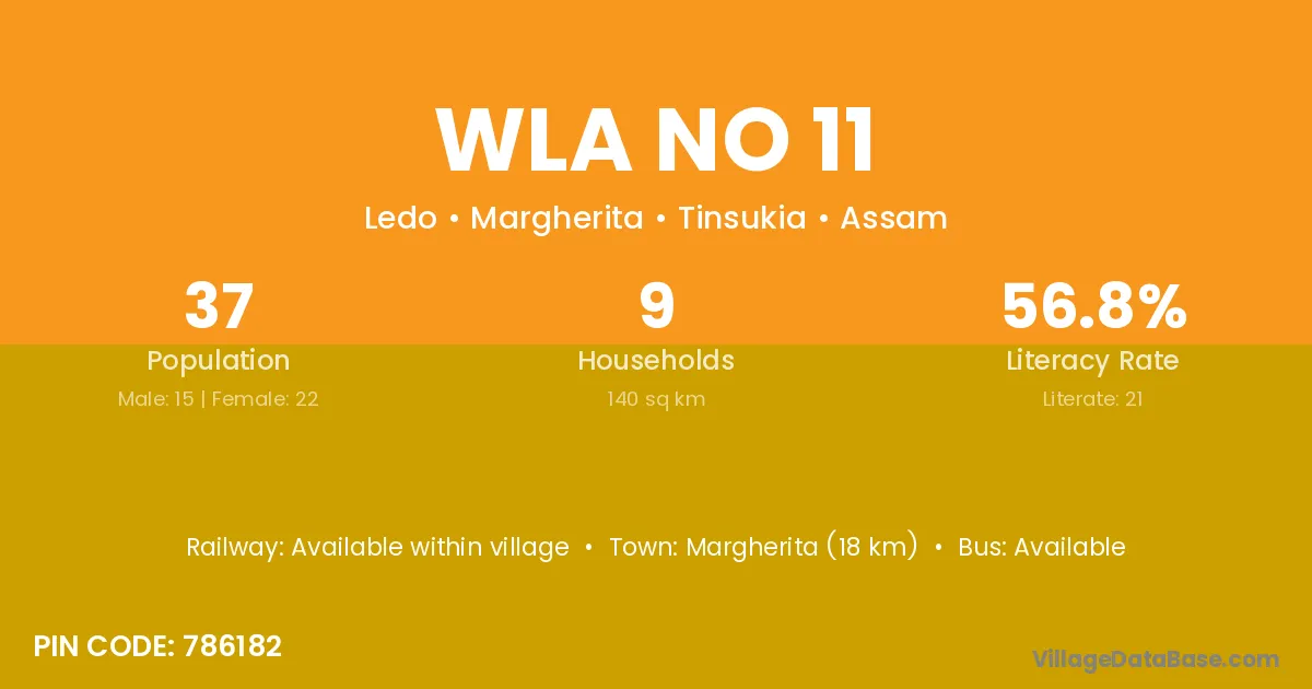 Margherita (18 km) is the nearest town to Wla No 11 village for major economic activities and is located approximately 18 km away.