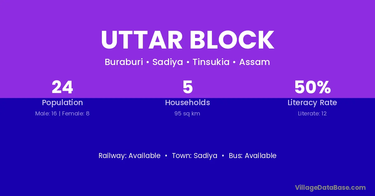 Uttar Block village has a total population of 24 people, of which 16 are males and 8 are females.