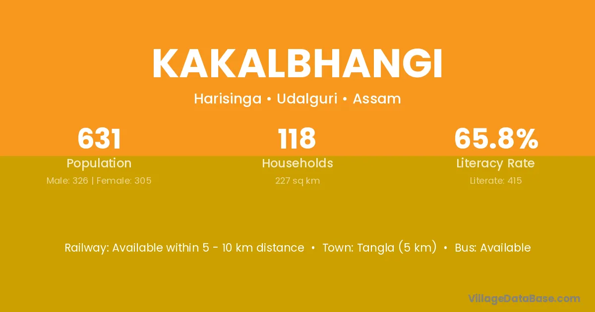 Tangla (5 km) is the nearest town to Kakalbhangi village for major economic activities and is located approximately 5 km away.