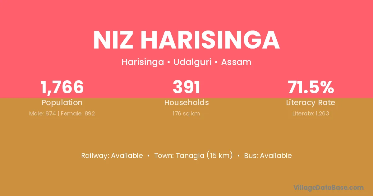 Niz Harisinga village is located in the Harisinga Subdivision of the Udalguri district in Assam .