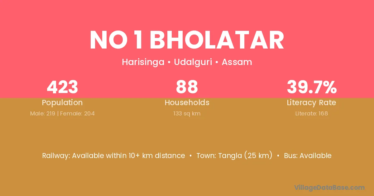 No 1 Bholatar village has a total population of 423 people, of which 219 are males and 204 are females.