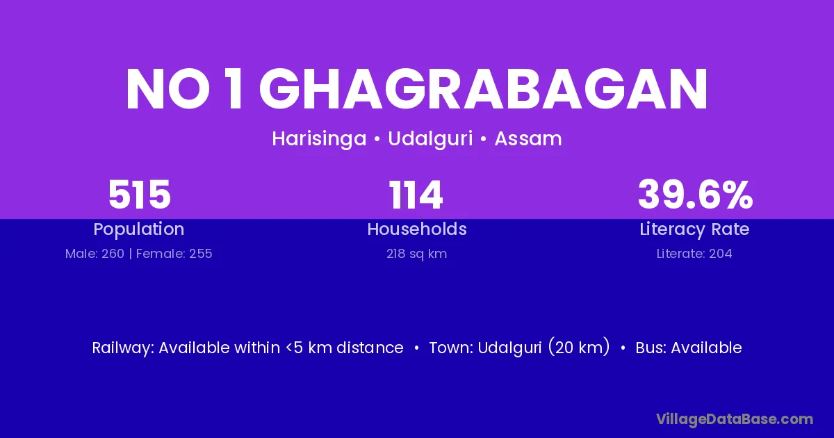 No 1 Ghagrabagan village has a total population of 515 people, of which 260 are males and 255 are females.