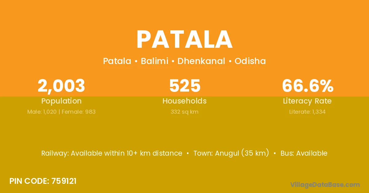 Patala village has a total population of 911 people, of which 458 are males and 453 are females.