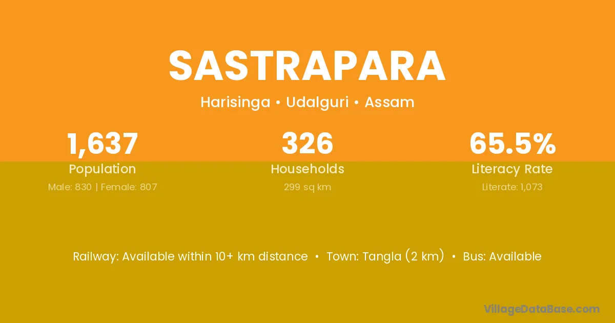 Sastrapara village has a total population of 1,637 people, of which 830 are males and 807 are females.
