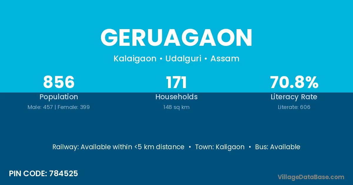 Kaligaon is the nearest town to Geruagaon village for major economic activities