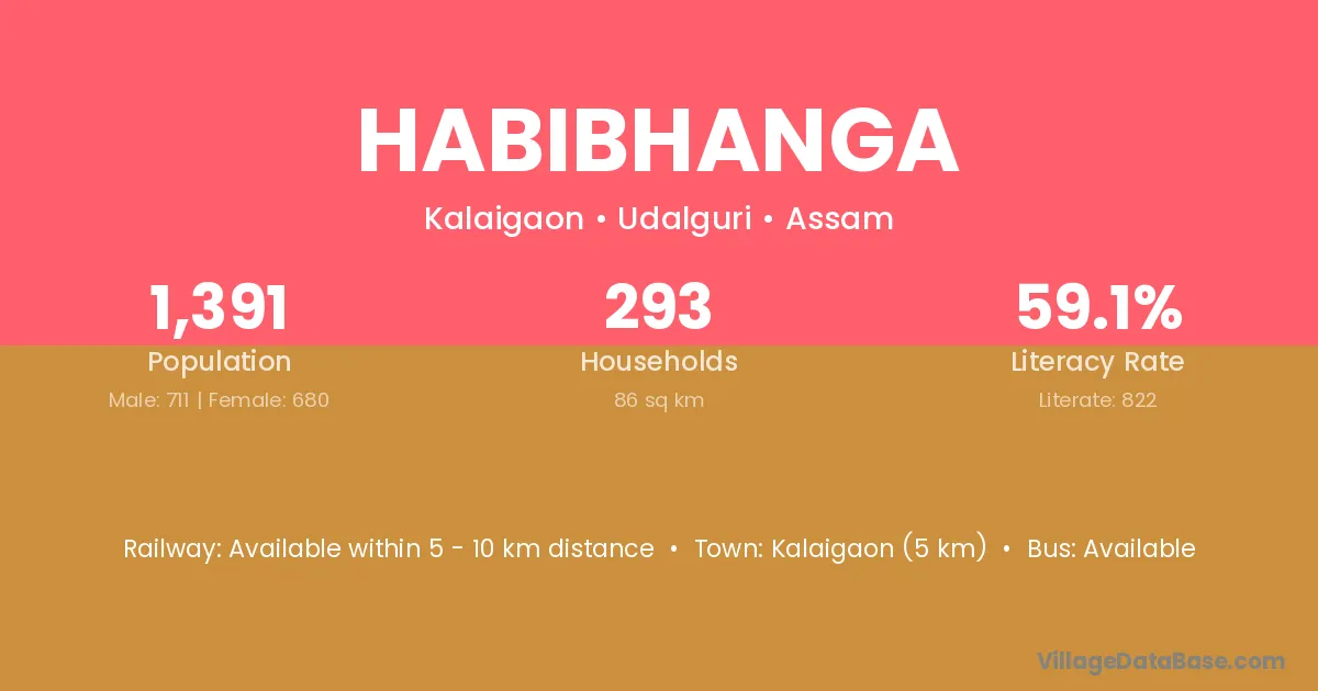 Kalaigaon (5 km) is the nearest town to Habibhanga village for major economic activities and is located approximately 5 km away.