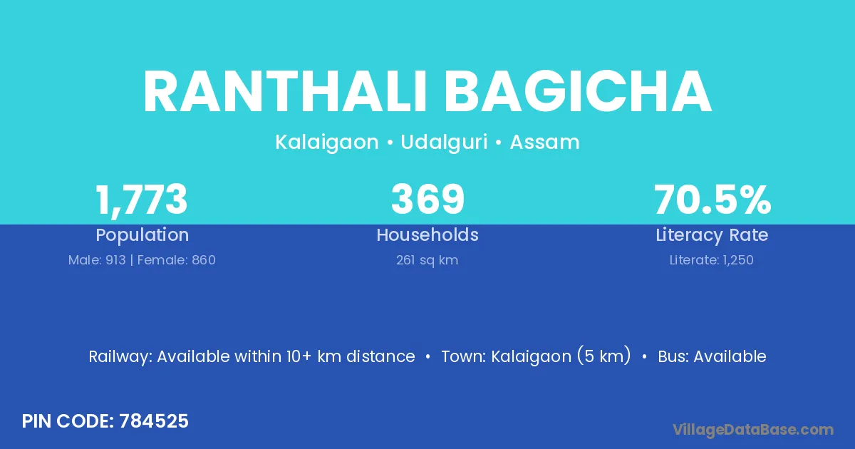 Kalaigaon (5 km) is the nearest town to Ranthali Bagicha village for major economic activities and is located approximately 5 km away.