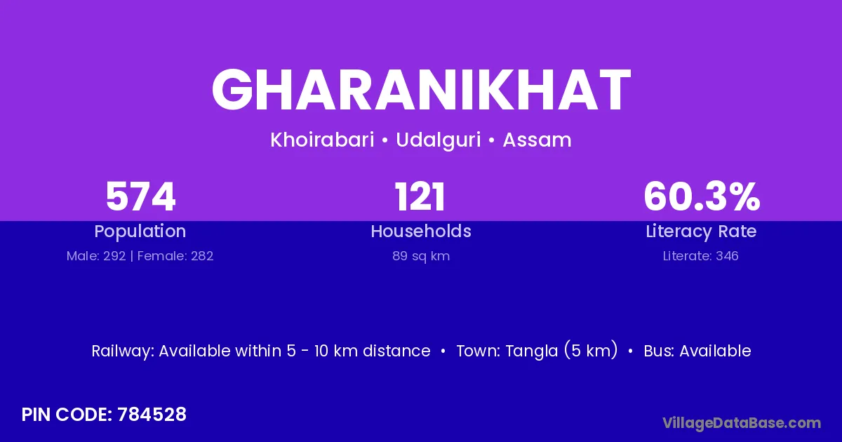 Tangla (5 km) is the nearest town to Gharanikhat village for major economic activities and is located approximately 5 km away.