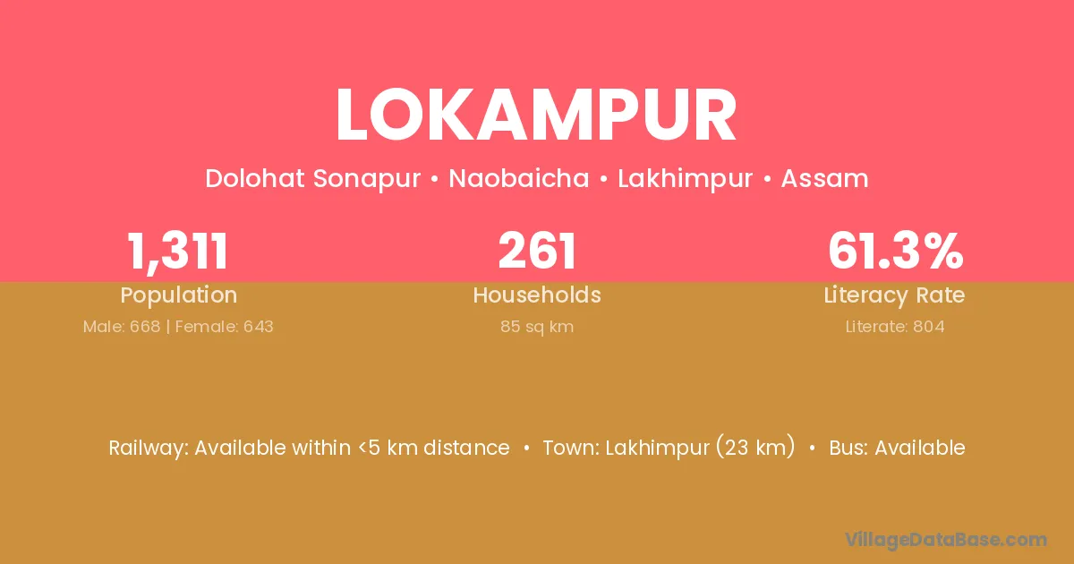 The literacy rate of Lokampur village is 38.62%. Male literacy stands at 47.11% and female literacy at 30.38%.