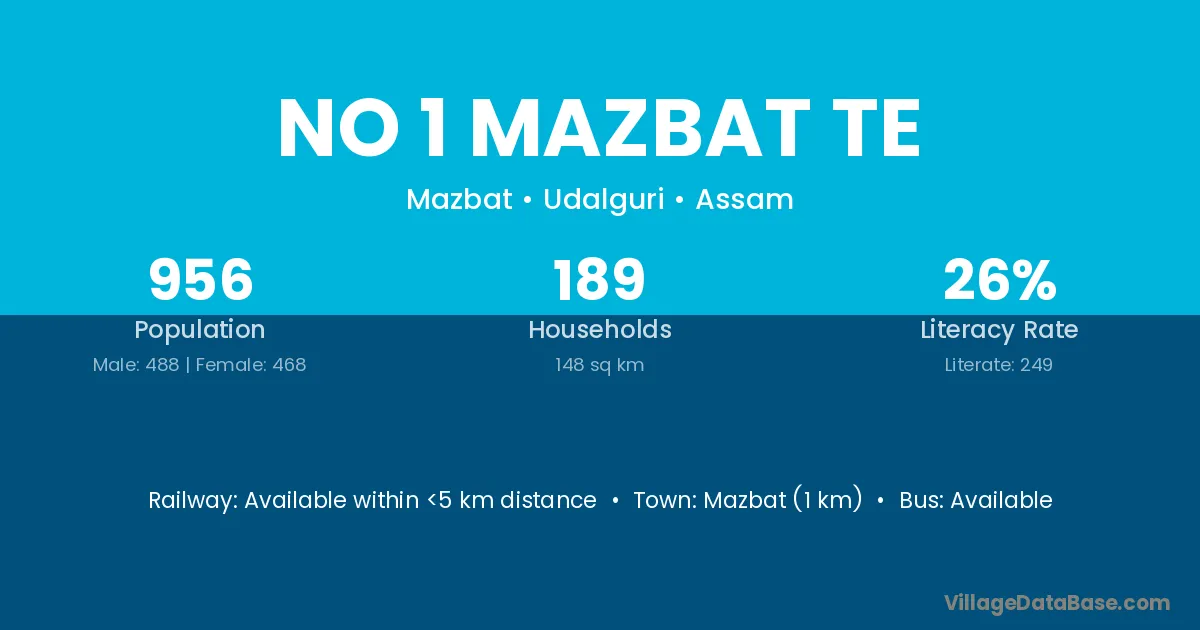 No 1 Mazbat Te village has a total population of 956 people, of which 488 are males and 468 are females.