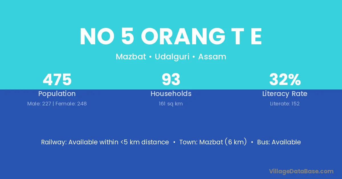 No 5 Orang T E village is located in the Mazbat Subdivision of the Udalguri district in Assam .