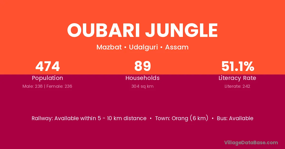Oubari Jungle village has a total population of 474 people, of which 238 are males and 236 are females.
