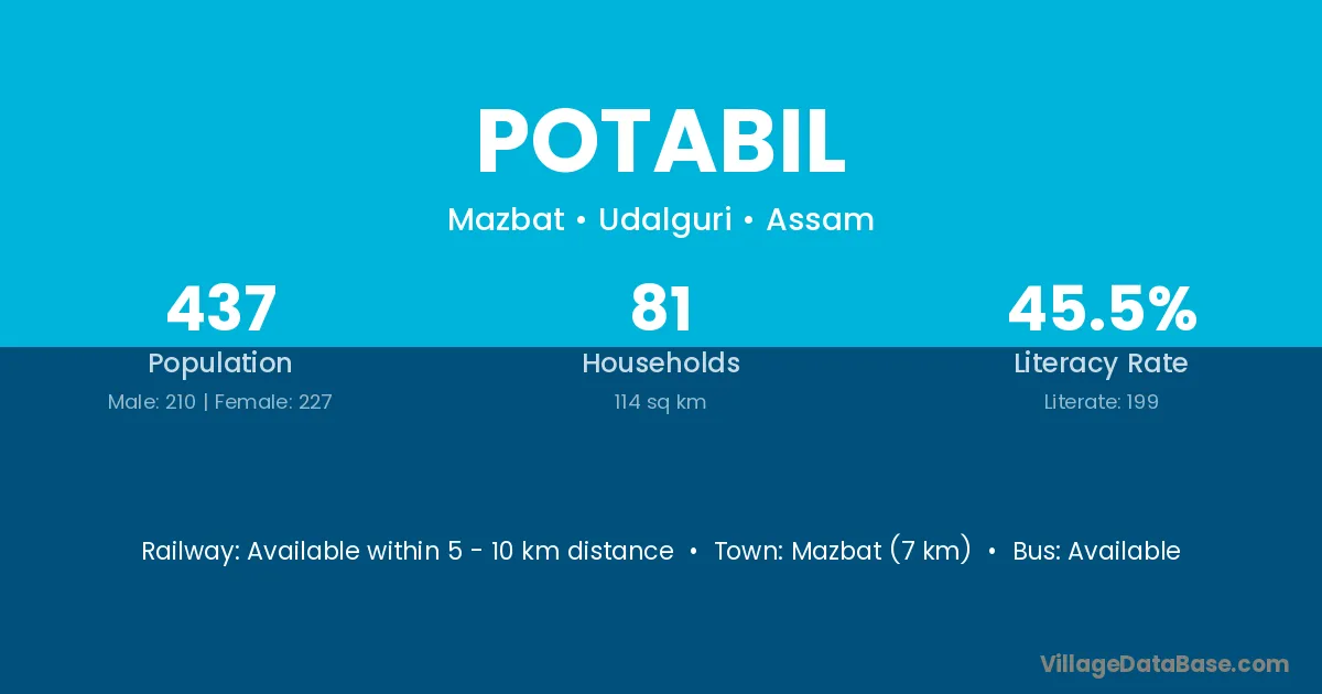 Potabil village has a total population of 437 people, of which 210 are males and 227 are females.