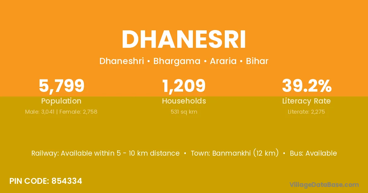 Banmankhi (12 km) is the nearest town to Dhanesri village for major economic activities and is located approximately 12 km away.