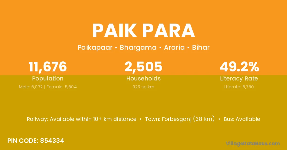 Paik Para village has a total population of 11,676 people, of which 6,072 are males and 5,604 are females.