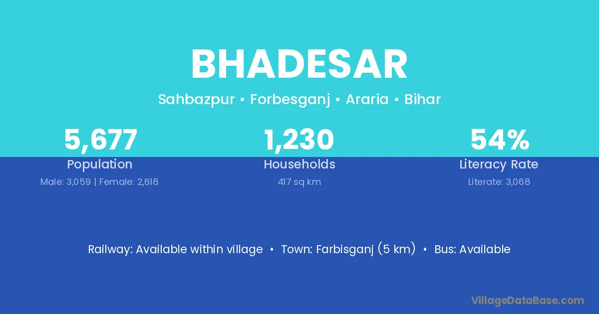 Farbisganj (5 km) is the nearest town to Bhadesar village for major economic activities and is located approximately 5 km away.