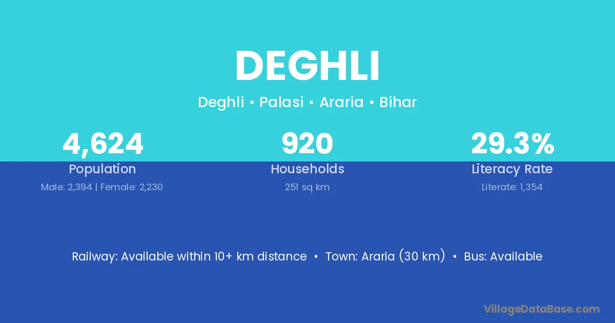 Araria (30 km) is the nearest town to Deghli village for major economic activities and is located approximately 30 km away.