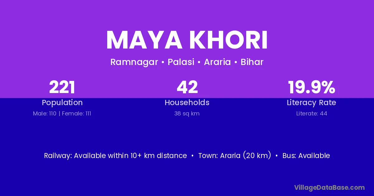 Araria (20 km) is the nearest town to Maya Khori village for major economic activities and is located approximately 20 km away.