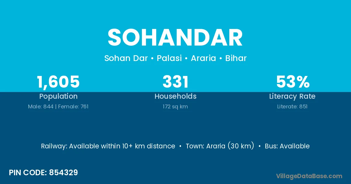 Araria (30 km) is the nearest town to Sohandar village for major economic activities and is located approximately 30 km away.