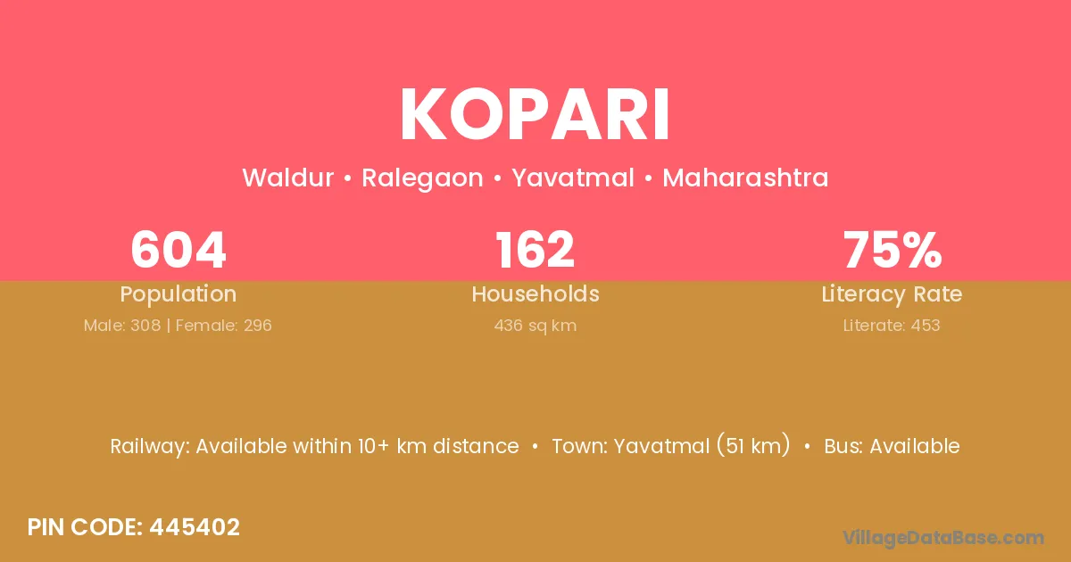 There are approximately 596 households in Kopari village.