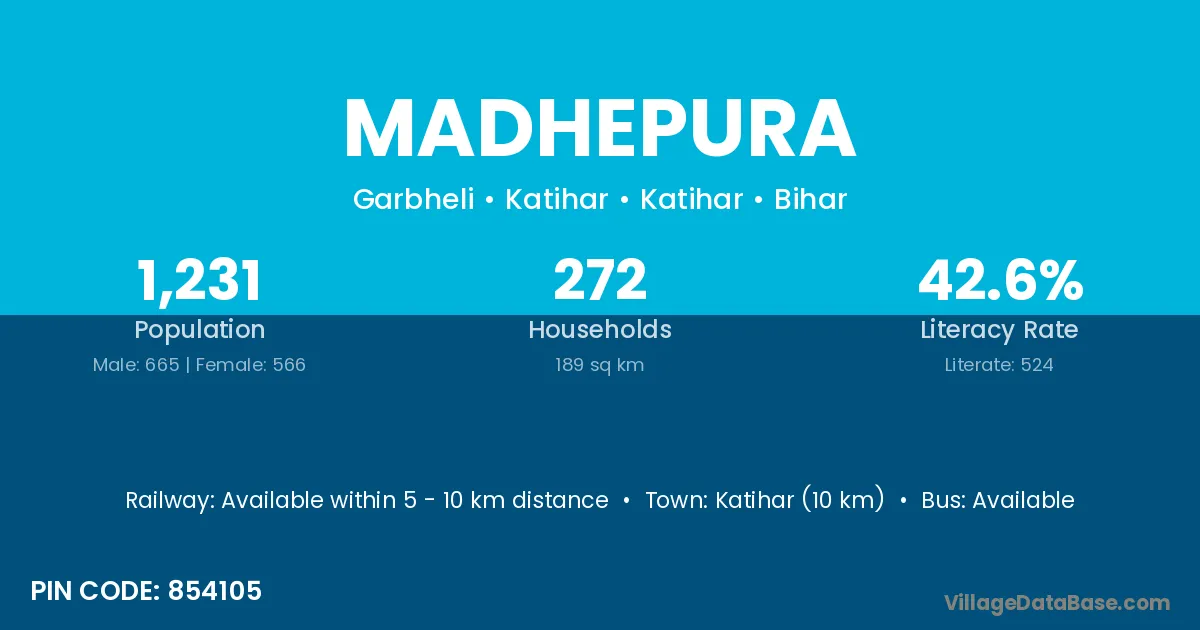 Araria (41 km) is the nearest town to Madhepura village for major economic activities and is located approximately 41 km away.