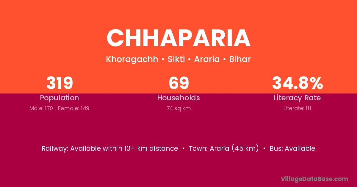 Araria (45 km) is the nearest town to Chhaparia village for major economic activities and is located approximately 45 km away.