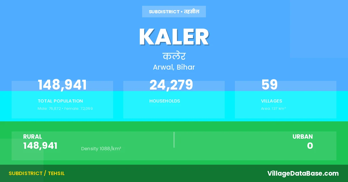 Kaler is a town and Subdivision in the Arwal district of the Bihar. In India, a Subdivision is a subdivision of a district responsible for the administration and revenue collection of a specific area within the district. Subdivisions play a crucial role in the local governance structure, contributing significantly to the development and administration of their communities.