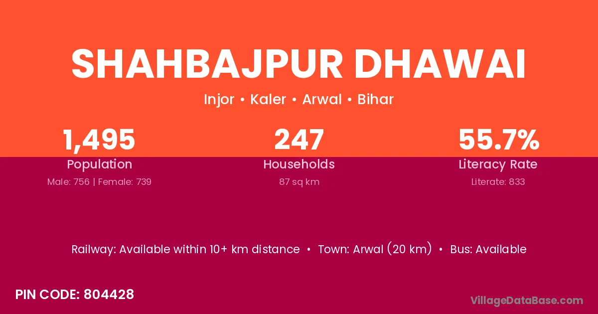 Arwal (20 km) is the nearest town to Shahbajpur Dhawai village for major economic activities and is located approximately 20 km away.