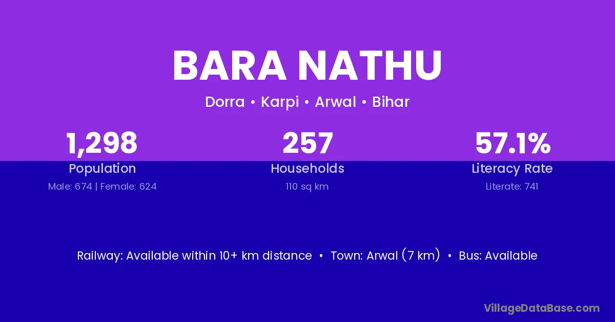 Arwal (7 km) is the nearest town to Bara Nathu village for major economic activities and is located approximately 7 km away.