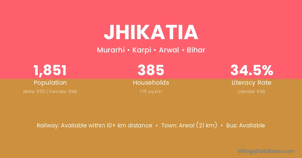 Arwal (21 km) is the nearest town to Jhikatia village for major economic activities and is located approximately 21 km away.