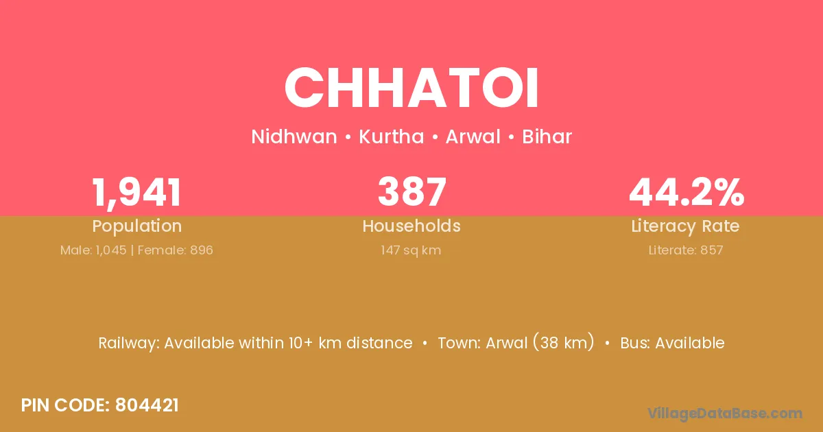 Chhatoi village is located in the Kurtha Subdivision of the Arwal district in Bihar .