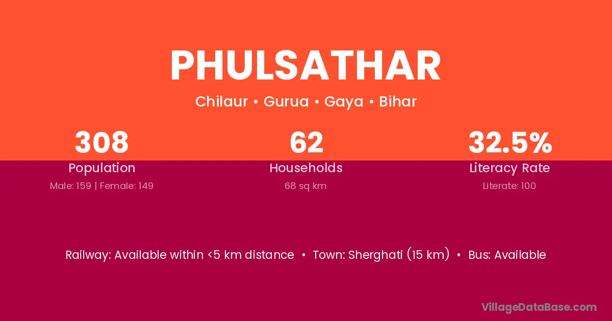 Arwal (32 km) is the nearest town to Phulsathar village for major economic activities and is located approximately 32 km away.